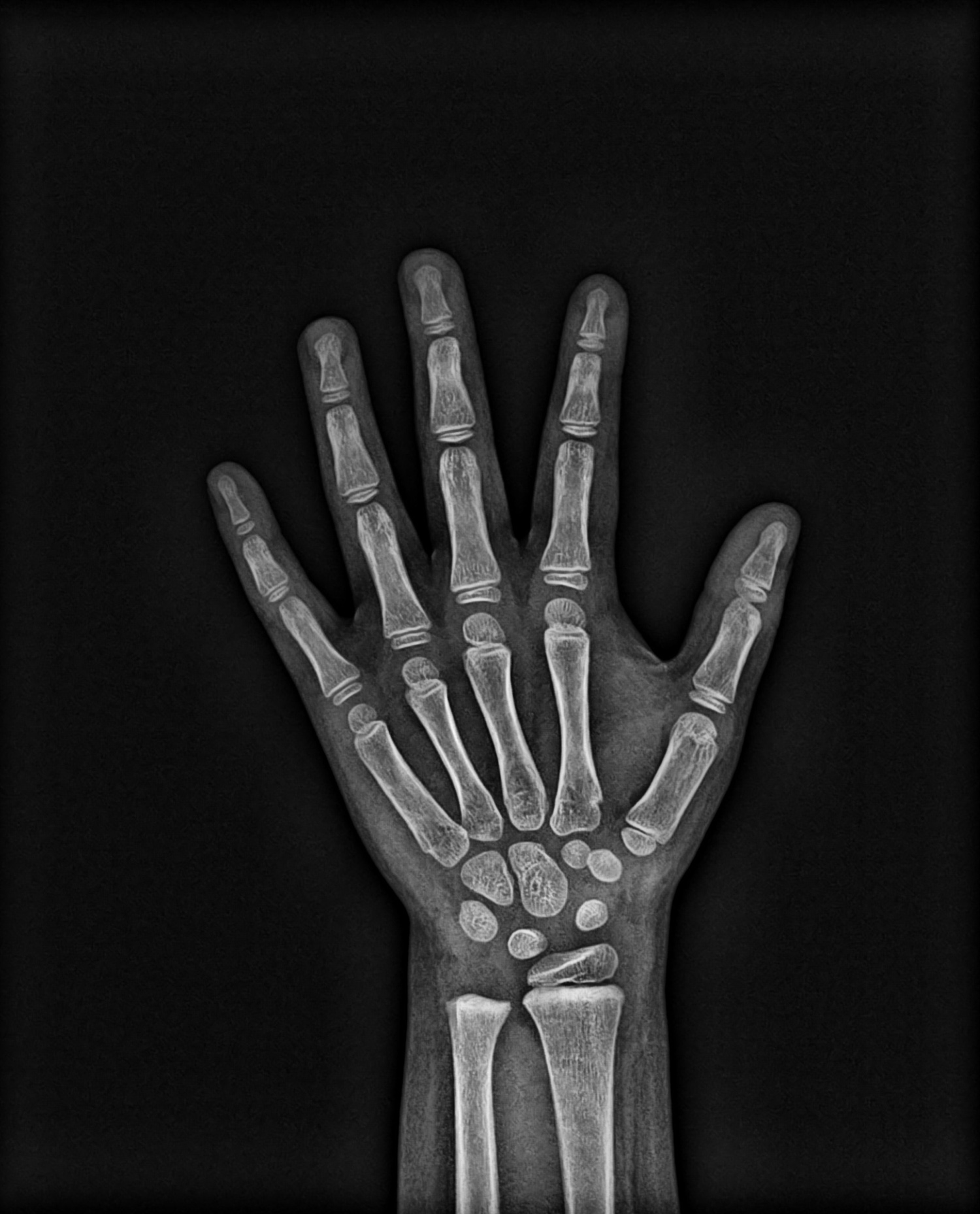 Exame, onde se registram estruturas ósseas da mão e punho que fornecem informações sobre idade óssea do paciente.
